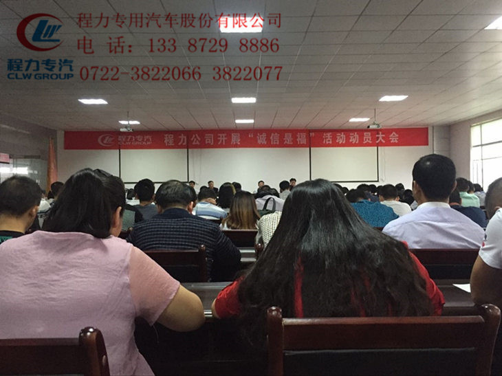 下午3點,程力集團“誠信是!被顒拥膭訂T大會在程力專用汽車股份有限公司大會議室召開,集團公司董事長、總經理及各位常務副總均出席了大會。