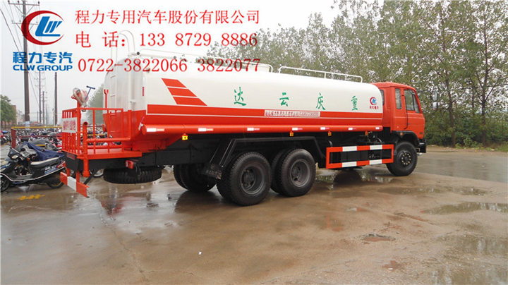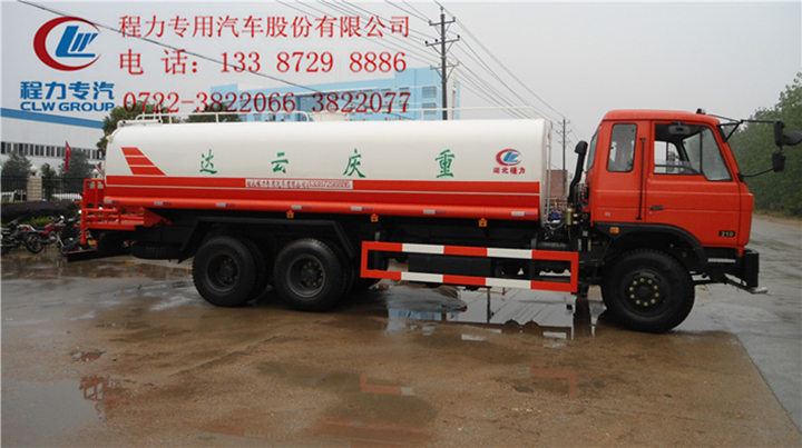 隨底盤選裝駕駛室。運輸介質:水,密度:1000千克/立方米;罐體有效容積:17.58立方米罐體外形尺寸(長/長軸/短軸)(mm):6600/2300/1600, 僅采用軸距(mm) : 4350+1300。防護材料:Q235A碳鋼,連接方式:左右側面及后下部防護均采用焊接連接,后部防護斷面尺寸(mm):120×50,后部防護離地高度(mm):520。ABS的型號:3631010-C2000,生產廠家:東風電子科技股份有限公司制動系統公司. |